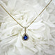 Natural Oval Cut Sapphire & Diamond Halo Pendant | 14k White Gold