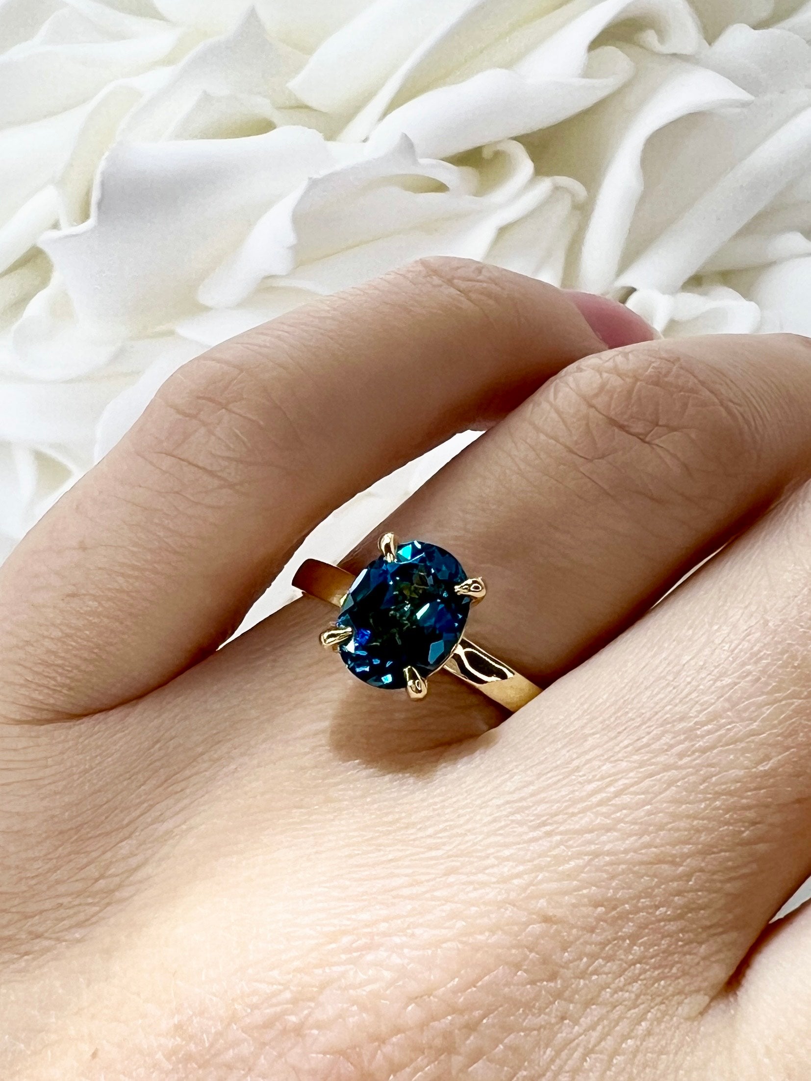 Genuine Oval Cut London Blue Topaz Ring | 14k Yellow Gold