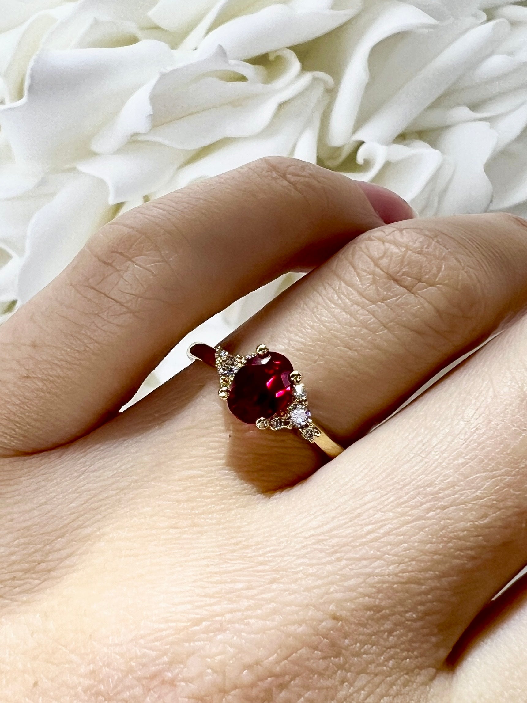 Go to the shop10k yellow gold lab created oval cut 7x5 ruby accented with 6 round brilliant lab grown diamonds