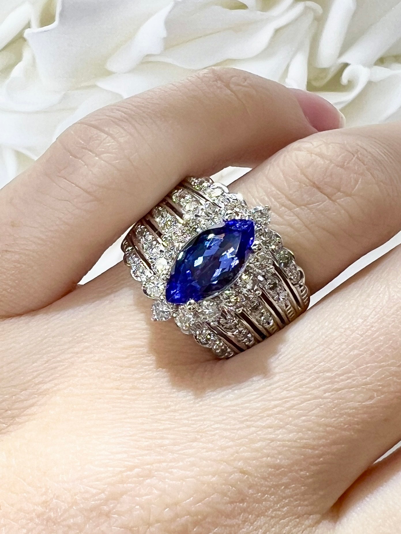 Vintage 2.00 Carat Marquise Cut Tanzanite and Diamond Ring | 18k White Gold