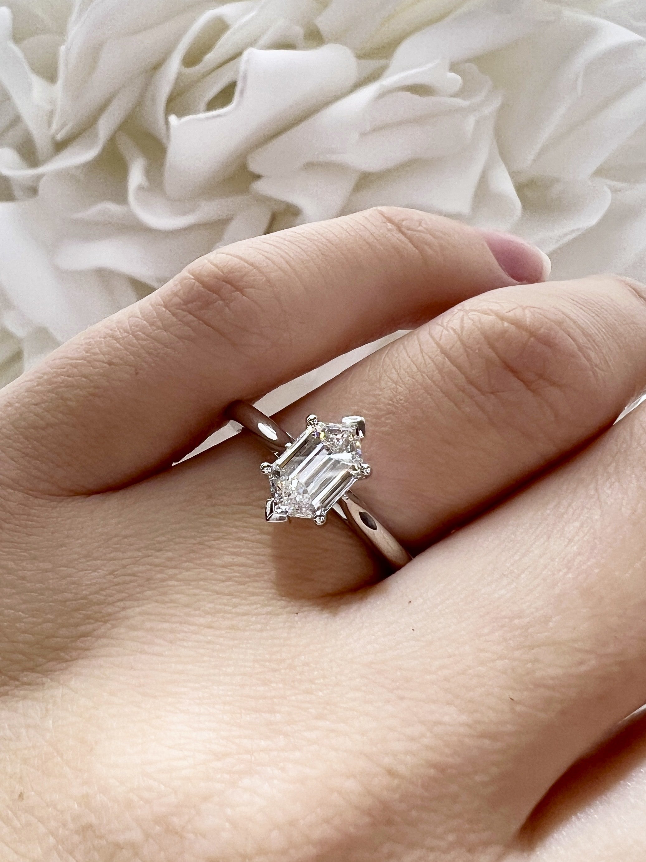 1.08 Carat Hexagon Cut Lab Grown Diamond Engagement Ring | 14k White Gold