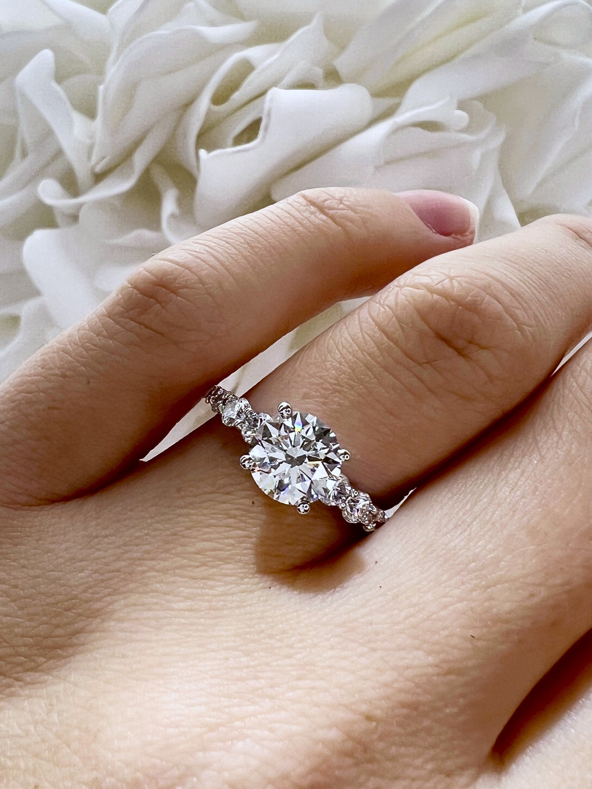 Go to the shop14k white gold engagement ring with 9 round brilliant lab grown diamonds.