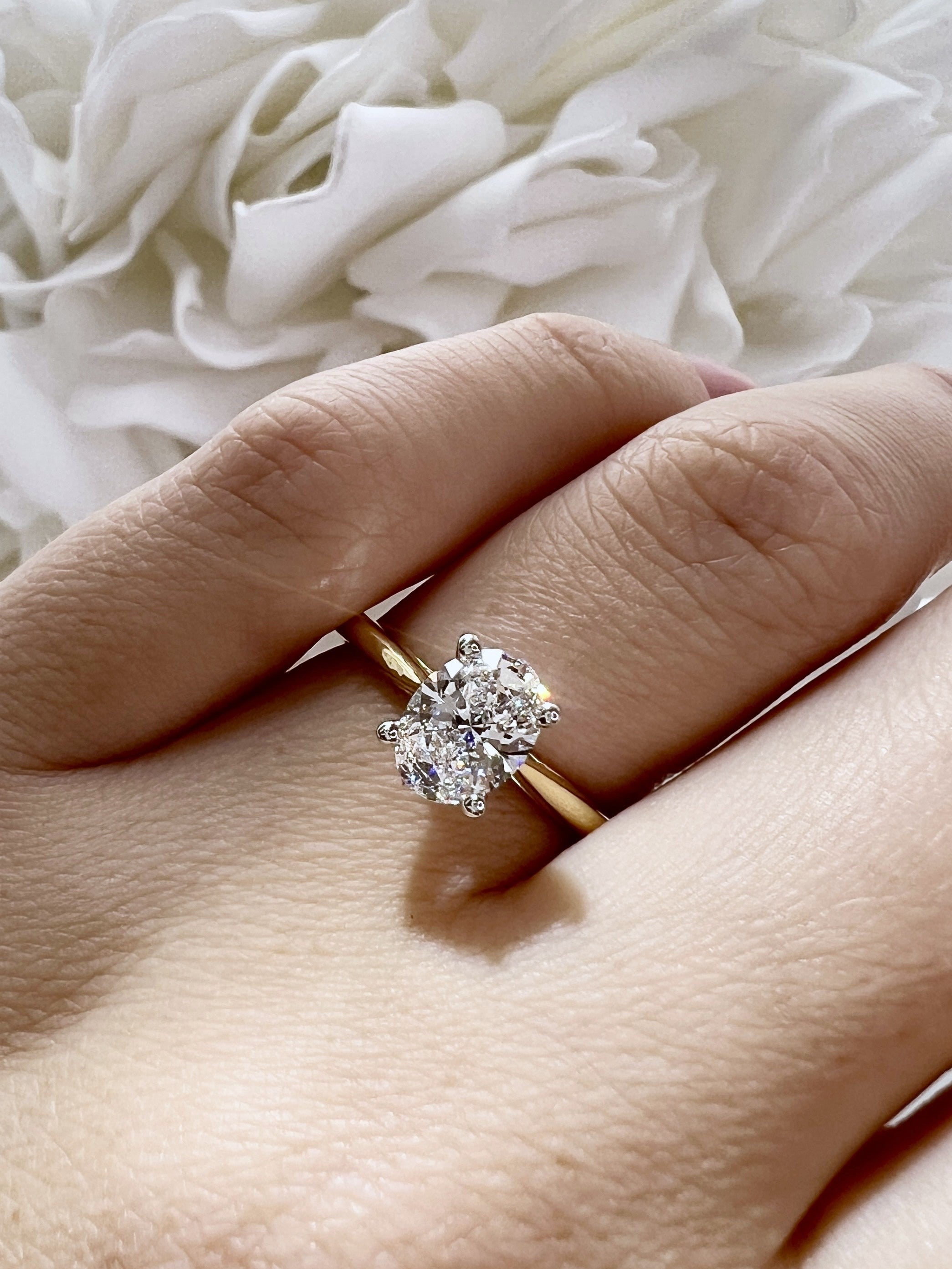 1.05 Carat Oval Lab Grown Diamond Engagement Ring | 14k Yellow Gold & Platinum