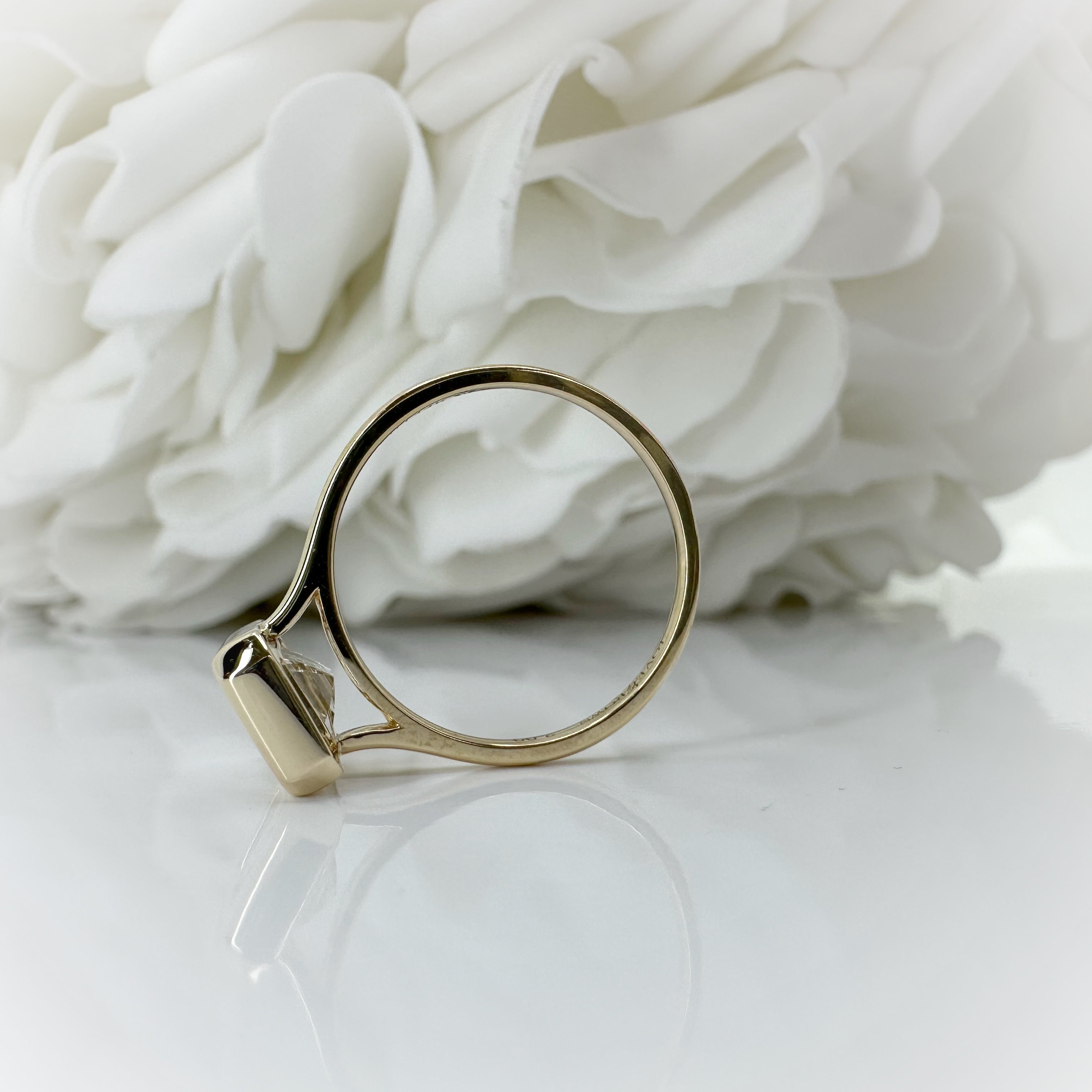 Go to the shop14k yellow gold bezel set solitaire emerald cut engagment ring