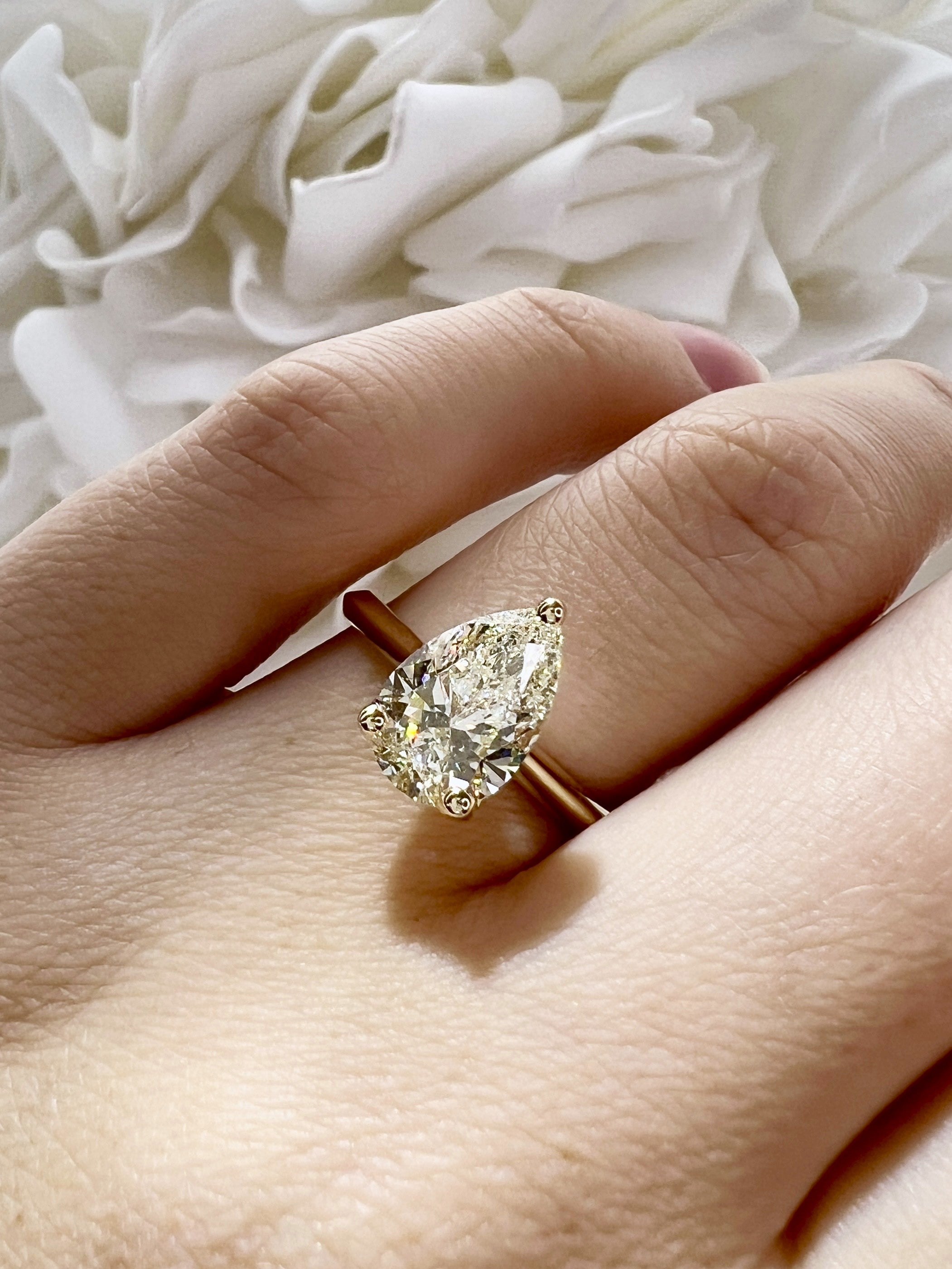 2.00 Carat Pear Cut Lab Grown Diamond Solitaire Engagement Ring | 10k Yellow Gold
