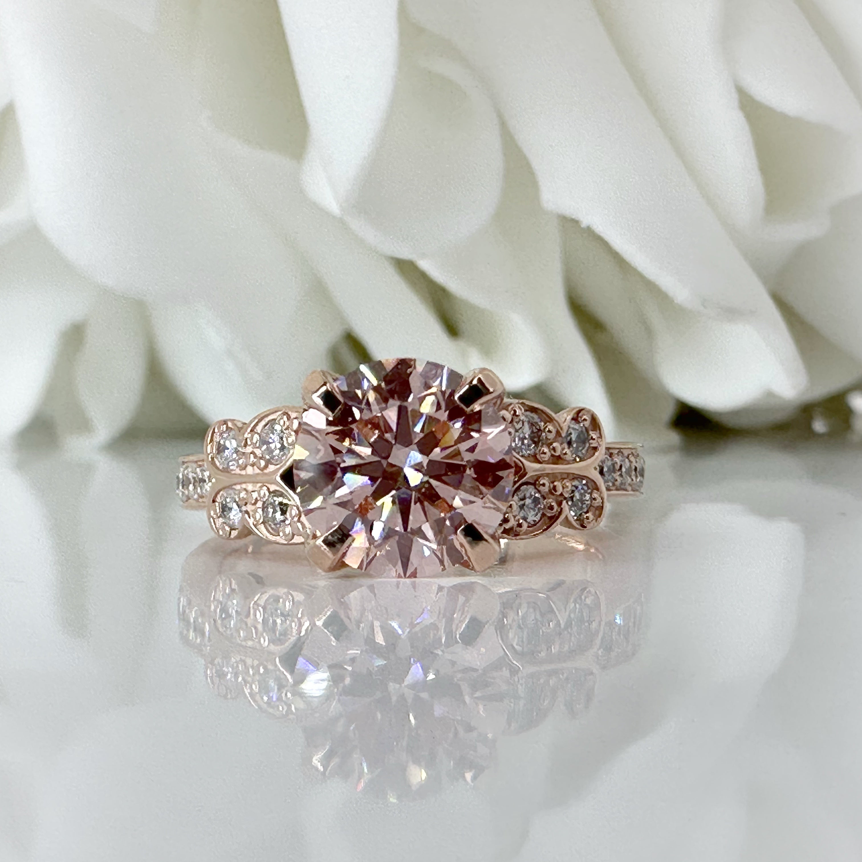 Vintage 1.80 Carat Pink Lab Grown Diamond Butterfly Engagement Ring | 14k Rose Gold