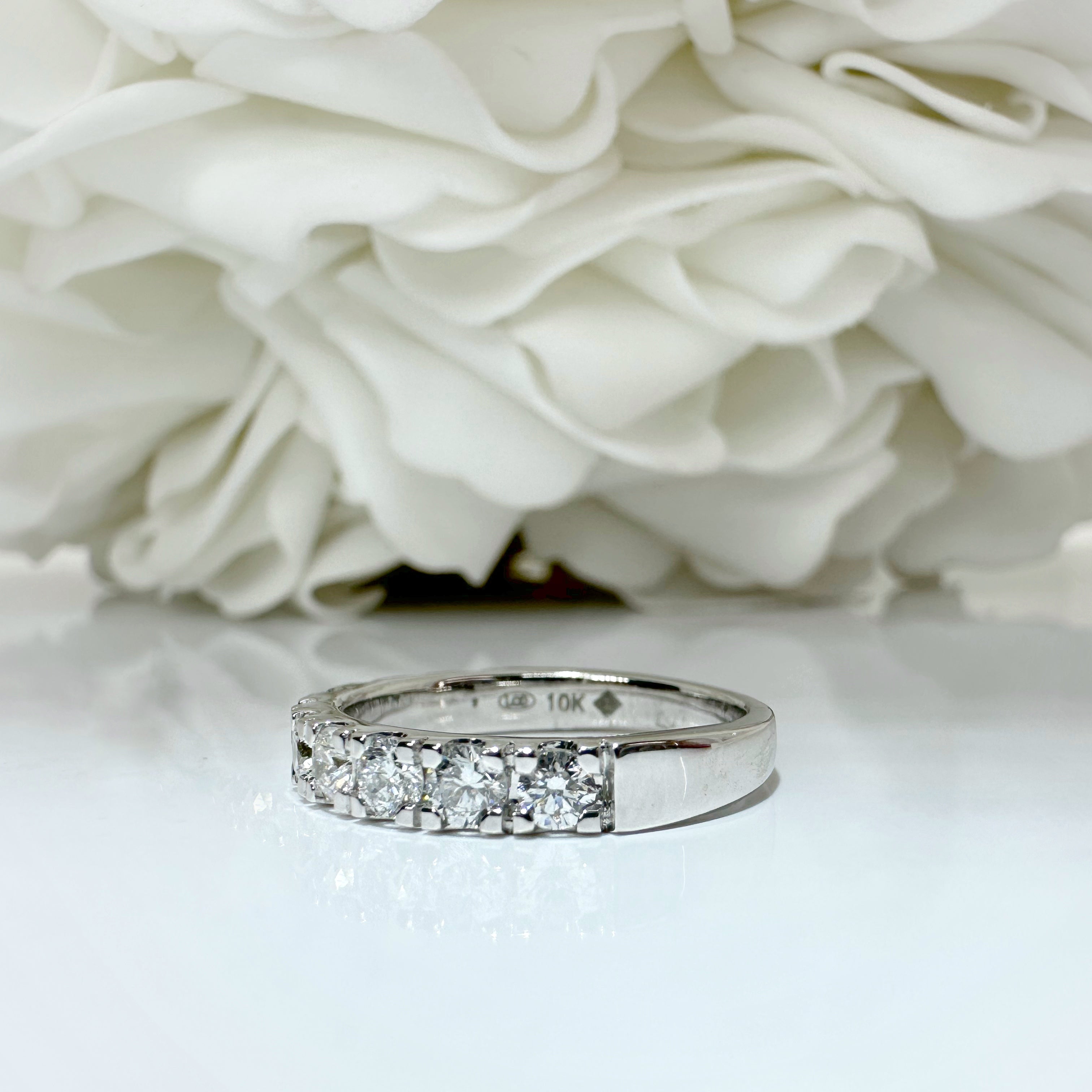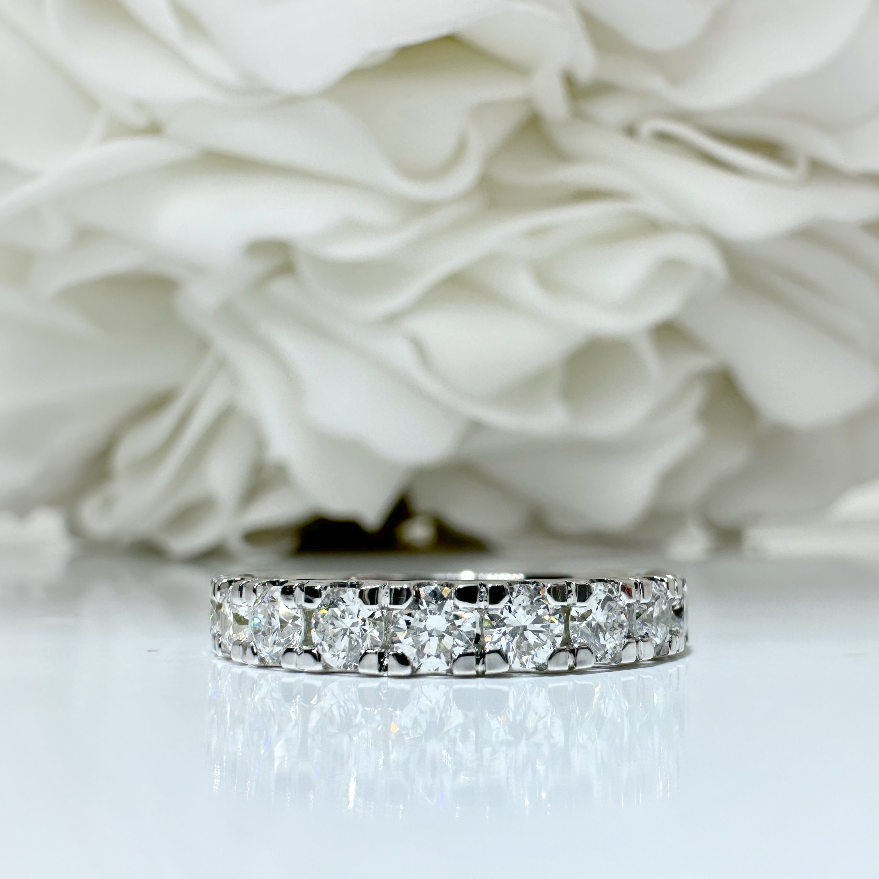 Go to the shop10k white gold anniversary band set with 10 Round brilliant claw set lab grown diamonds 1.00CTW (G,H SI)
