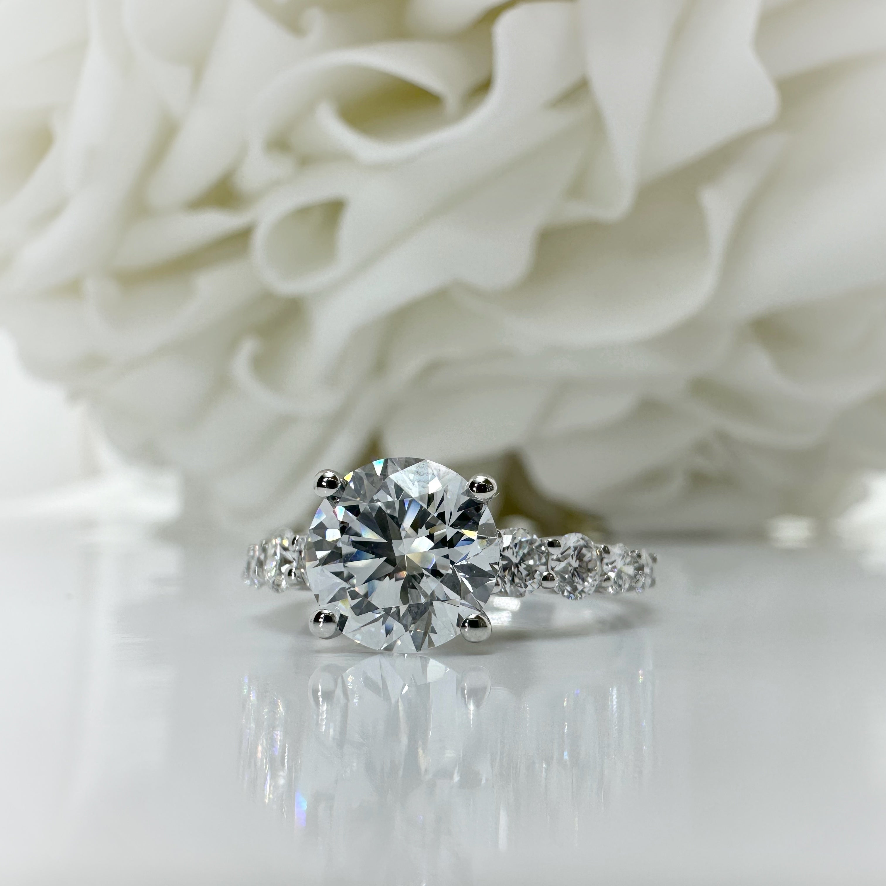 Go to the shop14k white gold engagement ring with 9 round brilliant lab grown diamonds.