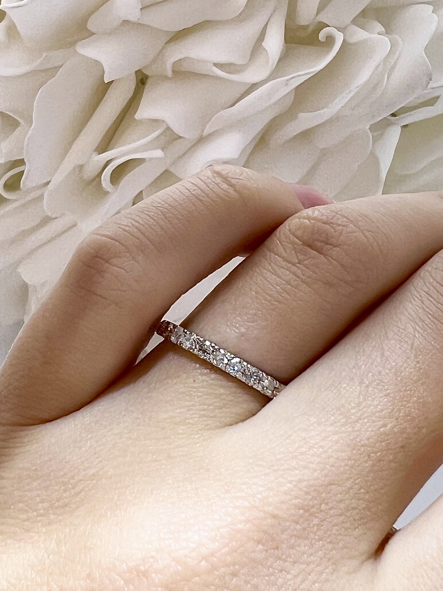 Go to the shop14k white gold, French set anniversary band set with 15 round brilliant natural diamonds.